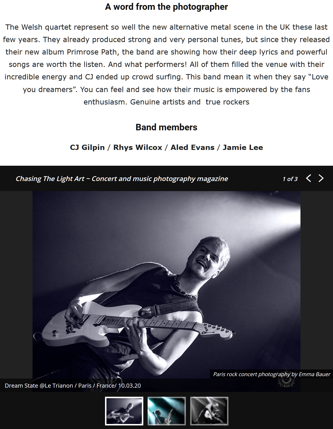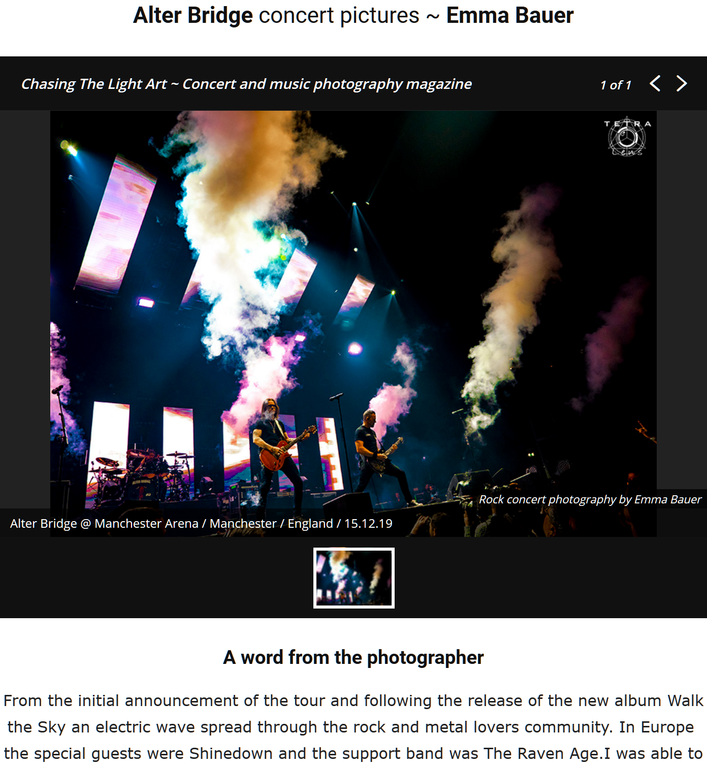 I've joined the Chasing The Light Art family back in 2019, a photographer's directory and web mag providing articles and live reviews about all genres of music but mainly rock, throughout pit photographer's work from all around the world.